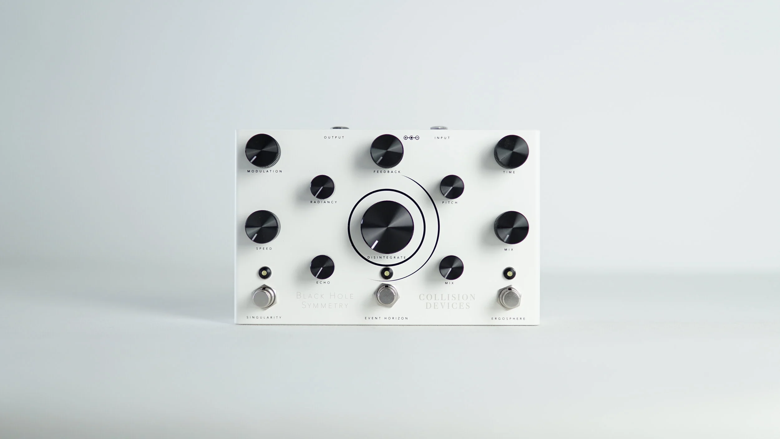 The Black Hole Symmetry is a Modulated Delay / Pitch Shifted Reverb / Destruction Fuzz pedal.